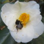02/03/25 IMG_6872 Bourdon terrestre butinant un Camellia japonica, près de la maison de Chateaubriand, dans la Vallée aux Loups, 92.