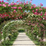 Allée bien fleurie à la roserai du Val de Marne, l’Haÿ-les-Roses, 94.
