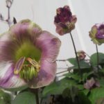 Vaillante cobée, Cobaea scandens, mexicaine ayant résisté à l’hiver, au jardin partagé » le Petit Paradis « , dans le Faubourg st Martin, 10e.