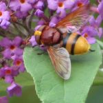 05/08/23 IMG_2405 Volucelle zonée butinant un Buddleja davidii, au parc de la Haute Île, à Neuilly sur Marne, 93.