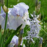 09/05/23 IMG_7668 Iris X et Camassia cusickii, dans le grand parterre des année 1990 au jardin des Tuileries, Paris centre.