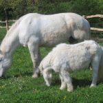 Cheval blanc et blanc poney, au parc départemental des Chanteraines, 92.