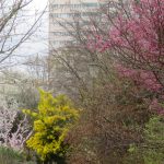 Les couleurs explosent sur les Prunus et le mimosa au parc Georges Brassens, 15e.