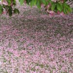 14/04/25 IMG_0243 O Hanami, c’est aussi un tapis !Pétales de Prunus serrulata ‘Kanzan’, au jardin des serres d’Auteuil, 16e.