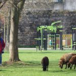 Bergère et son troupeau sur une pelouse au jardin d’Eole, 18e.