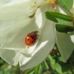Coccinelle asiatique sur pétale d’églantine, au parc de Bagatelle, 16e.