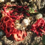 17/07/23 IMG_1721 Groupe de clathres rouges à différents stades de maturité, à l’arboretum de la Vallée aux loups, 92.