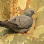 Pigeon colombin aux beaux yeux noirs, sur un platane du parc de Sceaux, 92.