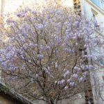 Glycine de Chine escaladant un ailante dans le quartier de la Goutte d’Or, 18e.
