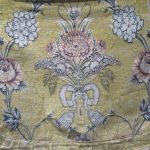Chasuble fleurie dans une vitrine de l’église st Michel, à Cordes sur Ciel, 81.