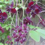 27/03/25 IMG_8504 Grosses fleurs femelles et petites fleurs mâles d’un Akebia kinata, au cimetière du Père Lachaise, 20e.