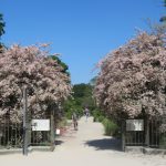 28/05/23 IMG_8936 2 Entrée de l’école de botanique flanquée de Kolkwitzia amabilis en fleurs, au jardin des plantes, 5e.