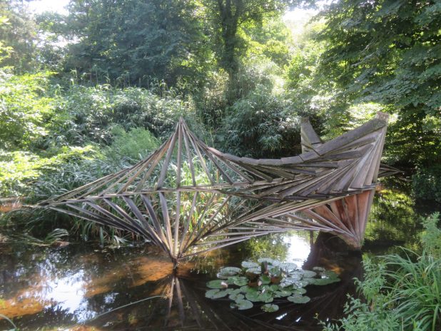 Architexture de Johan Le Guillerm, sur la mare du jardin d’agronomie tropicale, 12e.