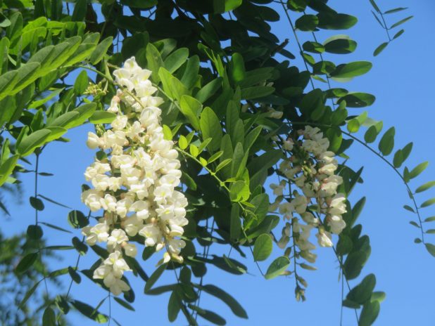 Remontée estivale d’un robinier près du pont de Bir-Hakeim, à la fin de la balade en bords de Seine, 15e.