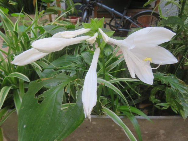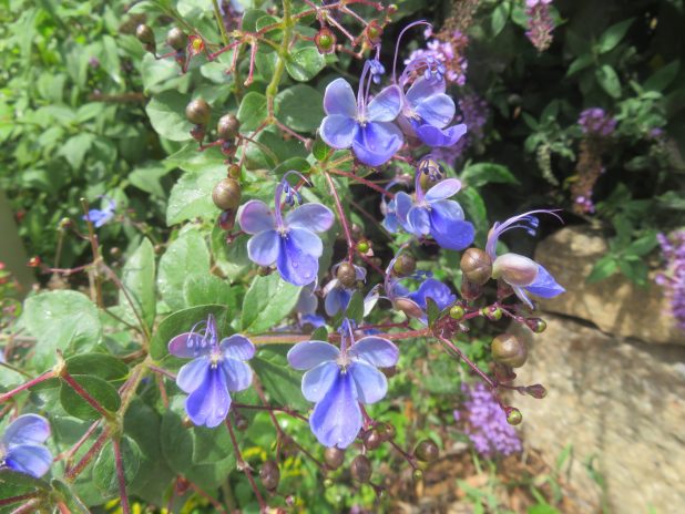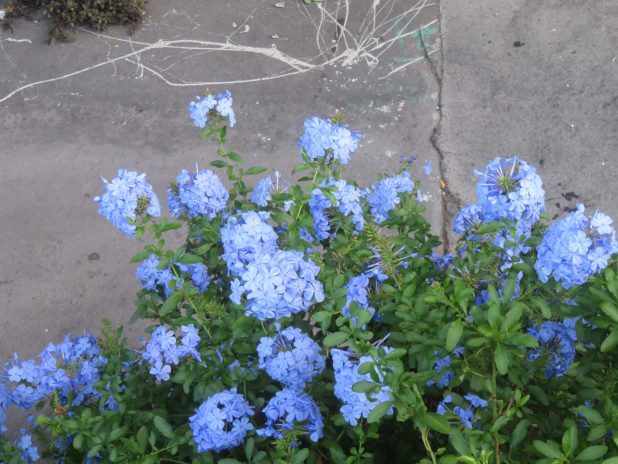 Cet arbuste me rappelle mes vacances ! Plumbago du Cap en bac dans la rue de Jessaint, 18e.