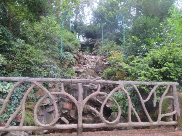 Panorama sur la cascade et son travail de rusticage, au parc Montsouris, 14e.