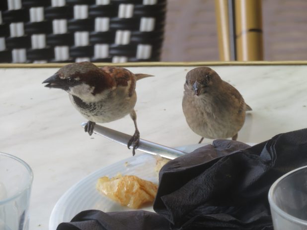 Retrouvailles avec les pierrots parisiens, dans un café près de la fontaine Stravinsky, Paris centre.