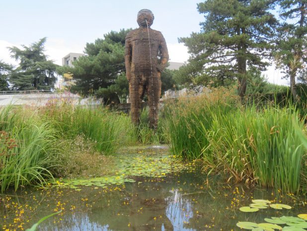 » L’Homme de bois « , oeuvre de l’artiste Fabrice Hyber, à admirer au jardin des plantes de Nantes, 44.