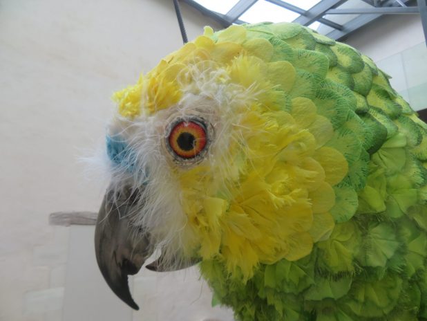 Visage de Vert-vert dont l’histoire est racontée par l’artiste Eléonore Saintagnan, à partir d’un poème héroïque de Jean-Baptiste Gresset en 1734. A admirer passage Ste Croix à Nantes, 44.