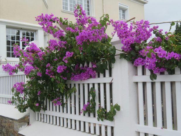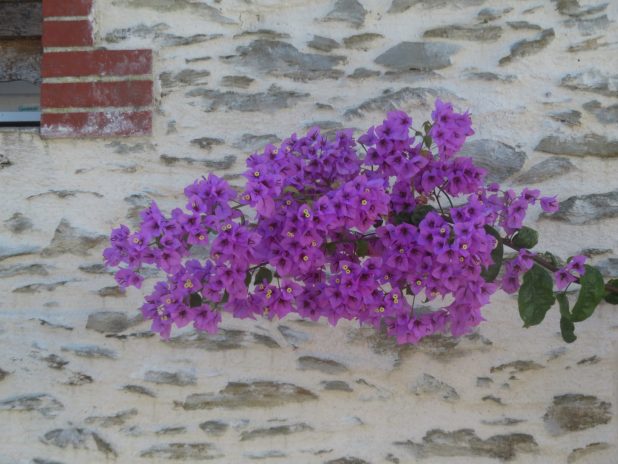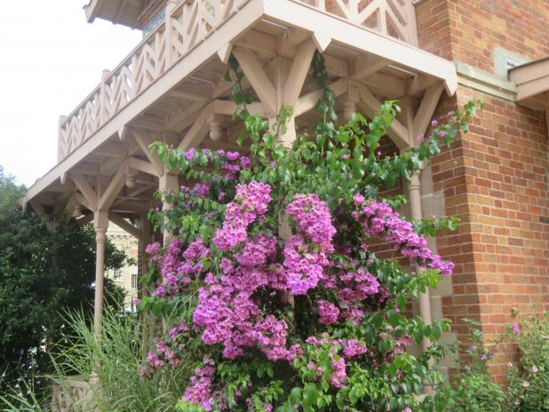 Spectaculaire bougainvillier sur un pavillon d’entrée, au parc des Buttes Chaumont, 18e.