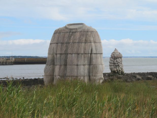 Deux éléments du triptyque » le pied, le pull-over et le système digestif « , oeuvre de Daniel Dewar et Gregory Gicquel, à admirer près du port de st Nazaire, 44.