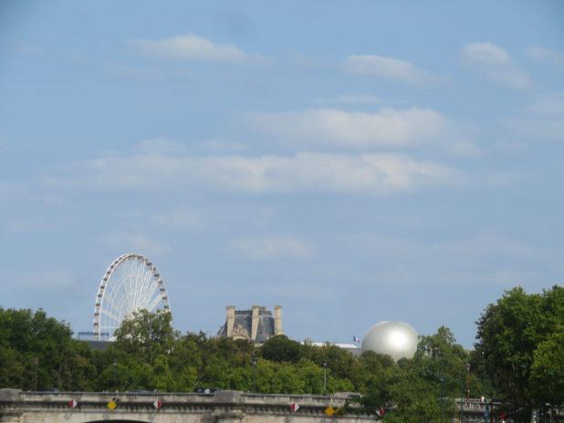 Jardin des Tuileries, avec « vasque » et grande roue, depuis les bords de Seine, 7e.