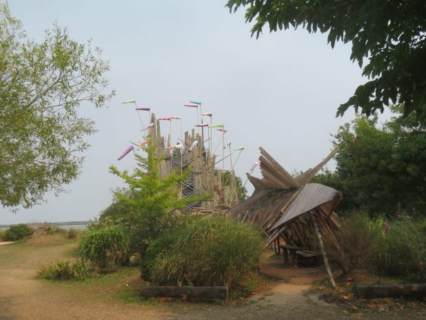Les manches à air flottent sur le jardin étoilé, 2017, oeuvre de Kinya Maruyama, à admirer à Paimboeuf, 44.