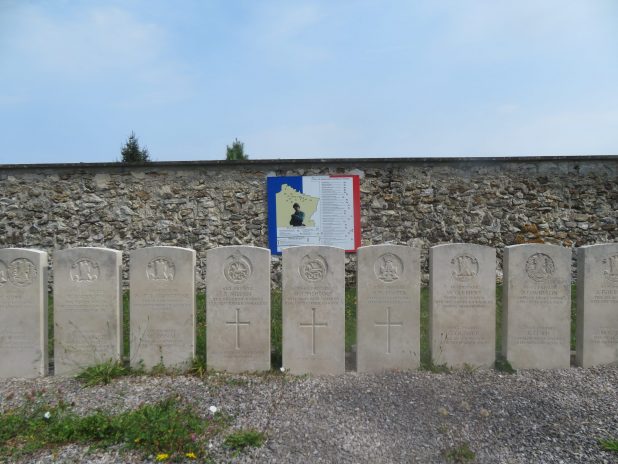 Tombes de soldats du Commonwealth et hommage aux poilus du village, dans le cimetière de la Sablonnière, 77.