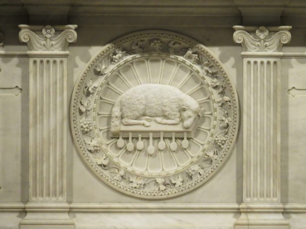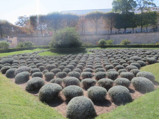 Troupeau de lavandes/moutons sur fond de musée de l’orangerie, au jardin des Tuileries, Paris centre.