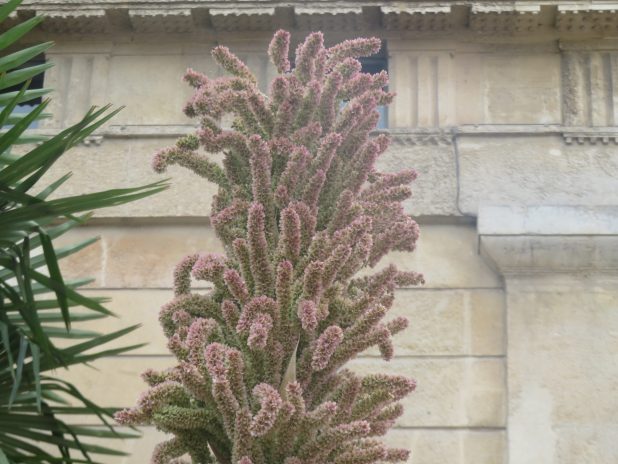 Floraison irréelle d’un Dasylirion devant une guérite du XVIIIe siècle, au jardin des plantes, 6e.