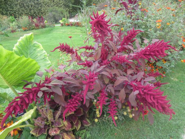 Feu d’artifice d’une amarante, Amaranthus cruentus ‘Oeschberg’, dans l’allée centrale du jardin des plantes, 6e.