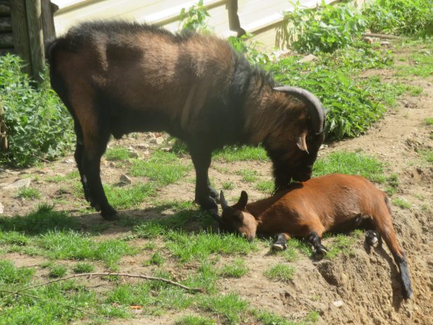 Réconfort bouc/chevreau dans la petite ferme de la forêt de st Germain-en-Laye, 78.