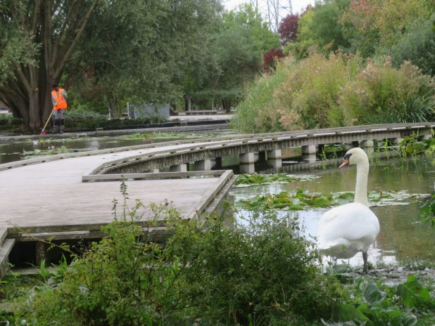 Matin tranquille dans les jardins du canal st Martin, réalisés par la paysagiste Jacqueline Osty, 10e.
