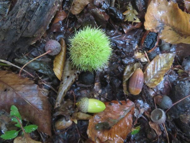Châtaigne et glands dans le sous bois du parc de la Poudrerie, 93.