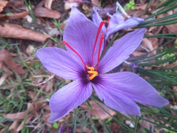 Jolie fleur de safran, Crocus sativus, dans le jardin alpin du jardin des plantes, 5e.