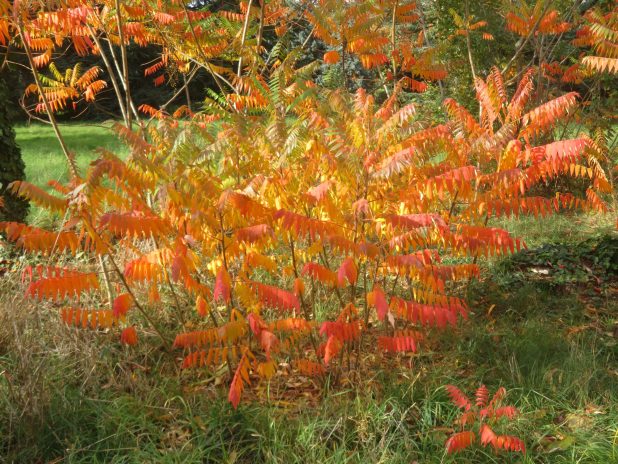 Flamboyance d’un sumac de Virginie, Rhus typhina, à l’arboretum du Breuil, 12e.