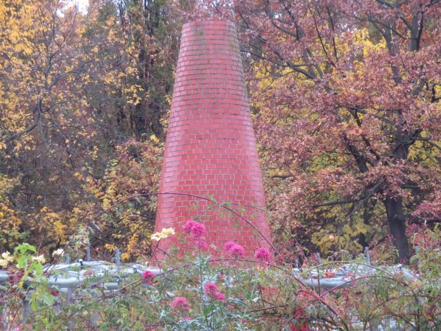 Cheminée dans le carré du feu, de l’automne et de l’Ouest, dans les parterres du parc de Bercy, 12e.