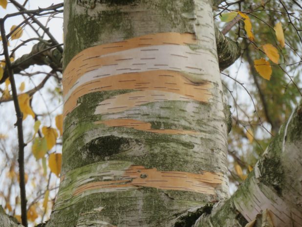 Beau tronc de bouleau, Betula sp, près de la passerelle reliant les deux parties du parc Montsouris, 14e.