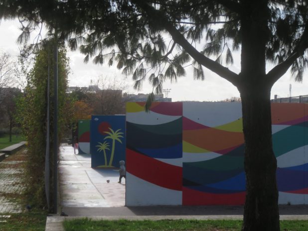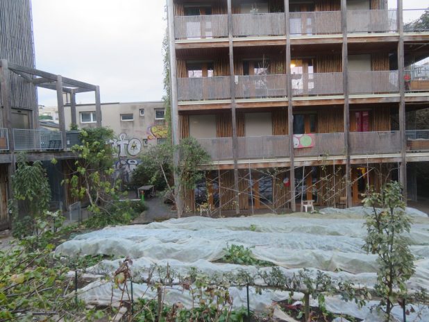 Vue sur le » jardin des traverses » à la fin de la balade dans le quartier Amiraux-Simplon, 18e.