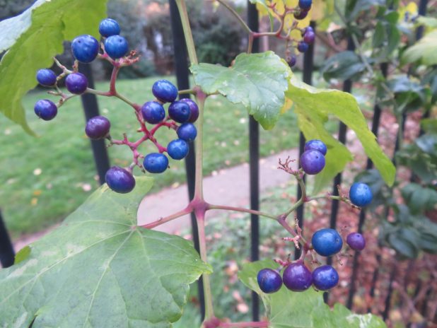 Fruits d’Ampelopsis brevipedunculata, entre square Giacometti et rue des Thermopyles, dans le quartier de Plaisance, 14e.