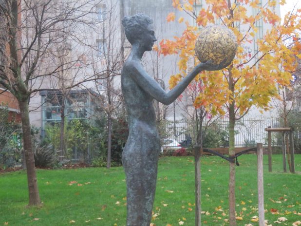 « La terre est bleue comme une orange » dans le jardin des enfants, au jardin Nelson Mandela, sur le parcours de la balade Paris centre historique.