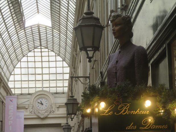 Ambiance dans le passage Verdeau créé sous Louis Philippe, sur le parcours des passages couverts de l’ouest, Paris centre.