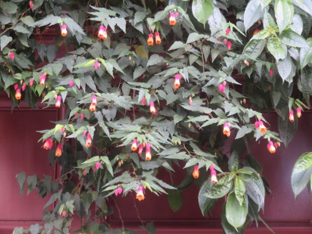 Abutilon fleuri dans l’Oasis d’Aboukir de Patrick Blanc, sur le parcours entre les passages couverts de l’Est, Paris centre.