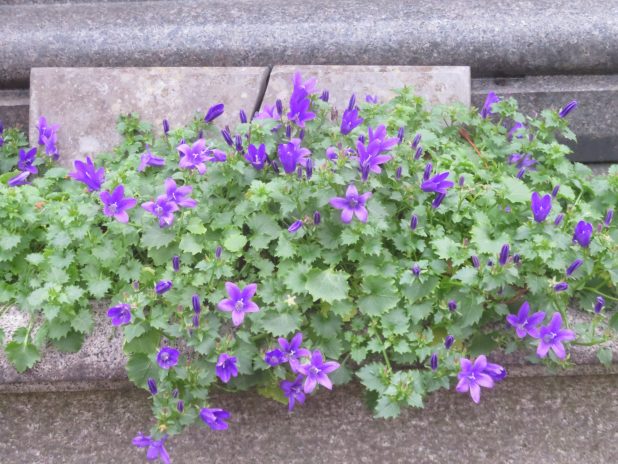 Vaillante campanule des murs, sur une tombe du cimetière du Père Lachaise, 20e.