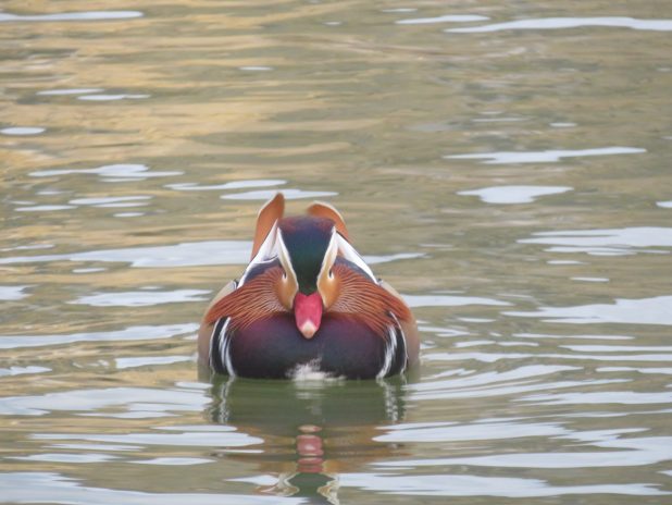 Canard mandarin dans le bassin octogonal du jardin du Luxembourg, 5e.