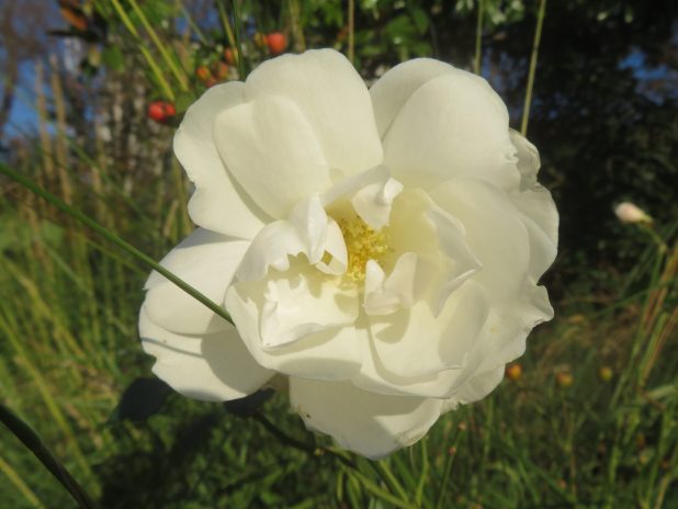 Rose ‘Fée des neiges’, la bien nommée, dans les jardins des Champs Elysées qui feront leur entrée au catalogue en janvier. 8e.