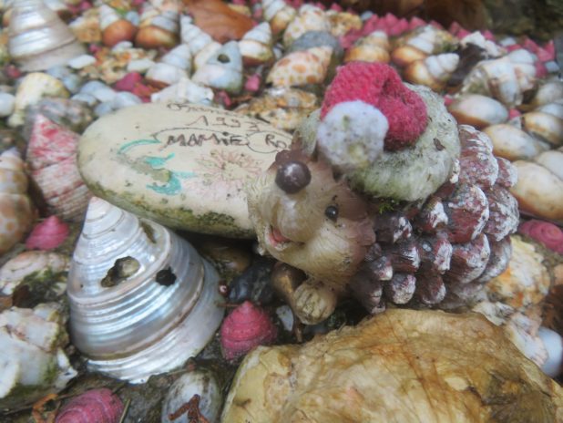 Jeune hérisson à la plage, sur la tombe de Jacques Higelin, 1940-2018, au cimetière du Père Lachaise, 20e.