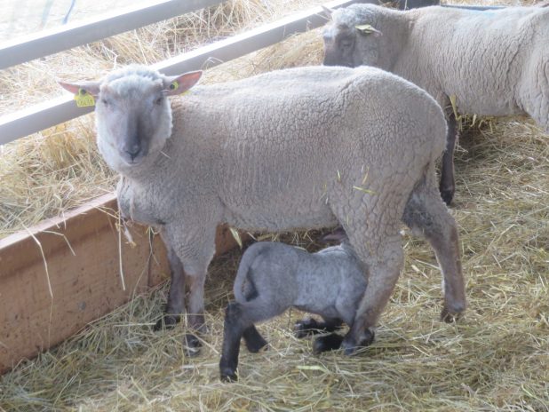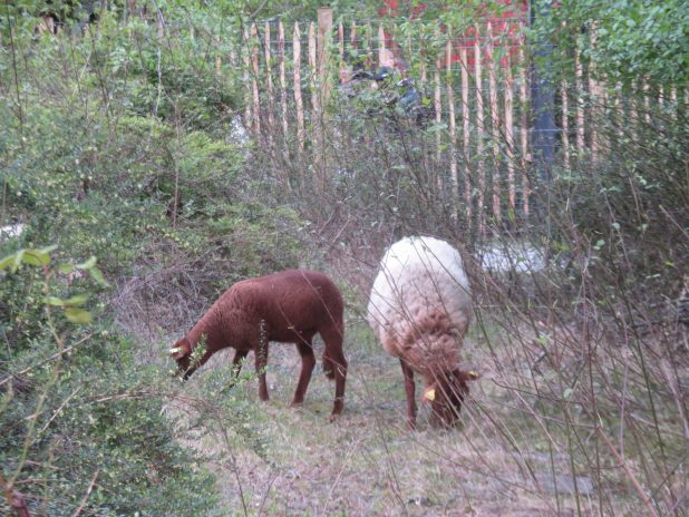 Brebis solognote et son grand agneau, en goguette dans la mini ferme du parc de la Villette, 19e.