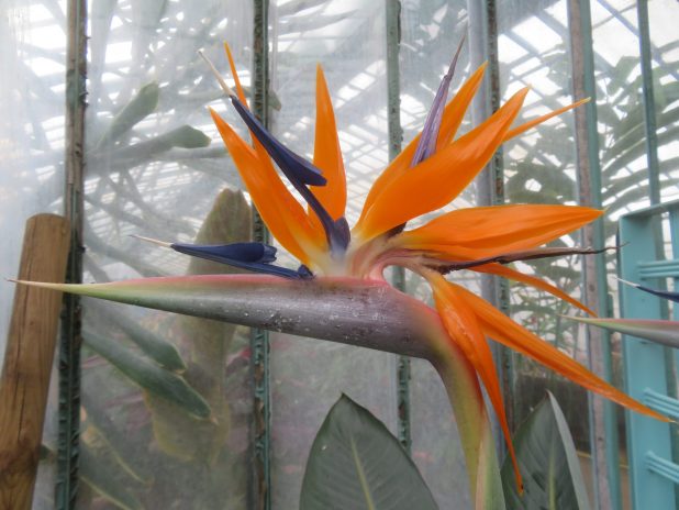 Oiseau de Paradis dans une serre des jardins d’Auteuil, 16e.