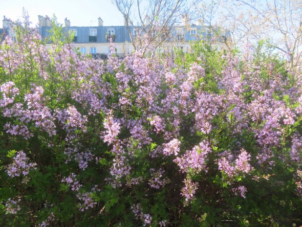 » Lilas persil « , Syringa x persica Laciniata, sur la coulée verte René Dumont, 12e.